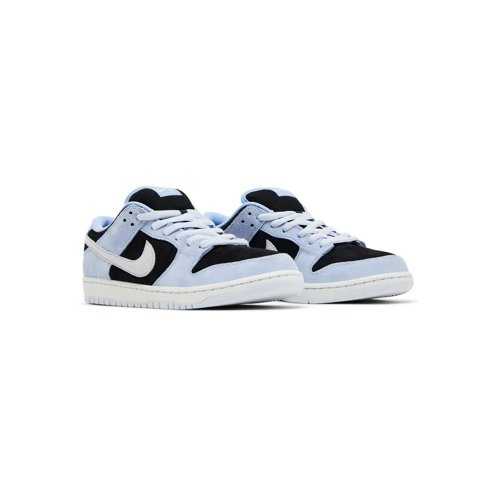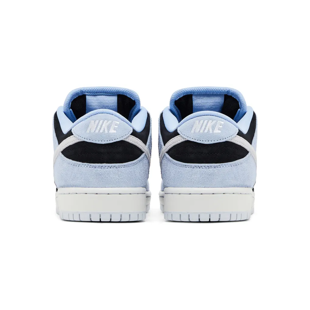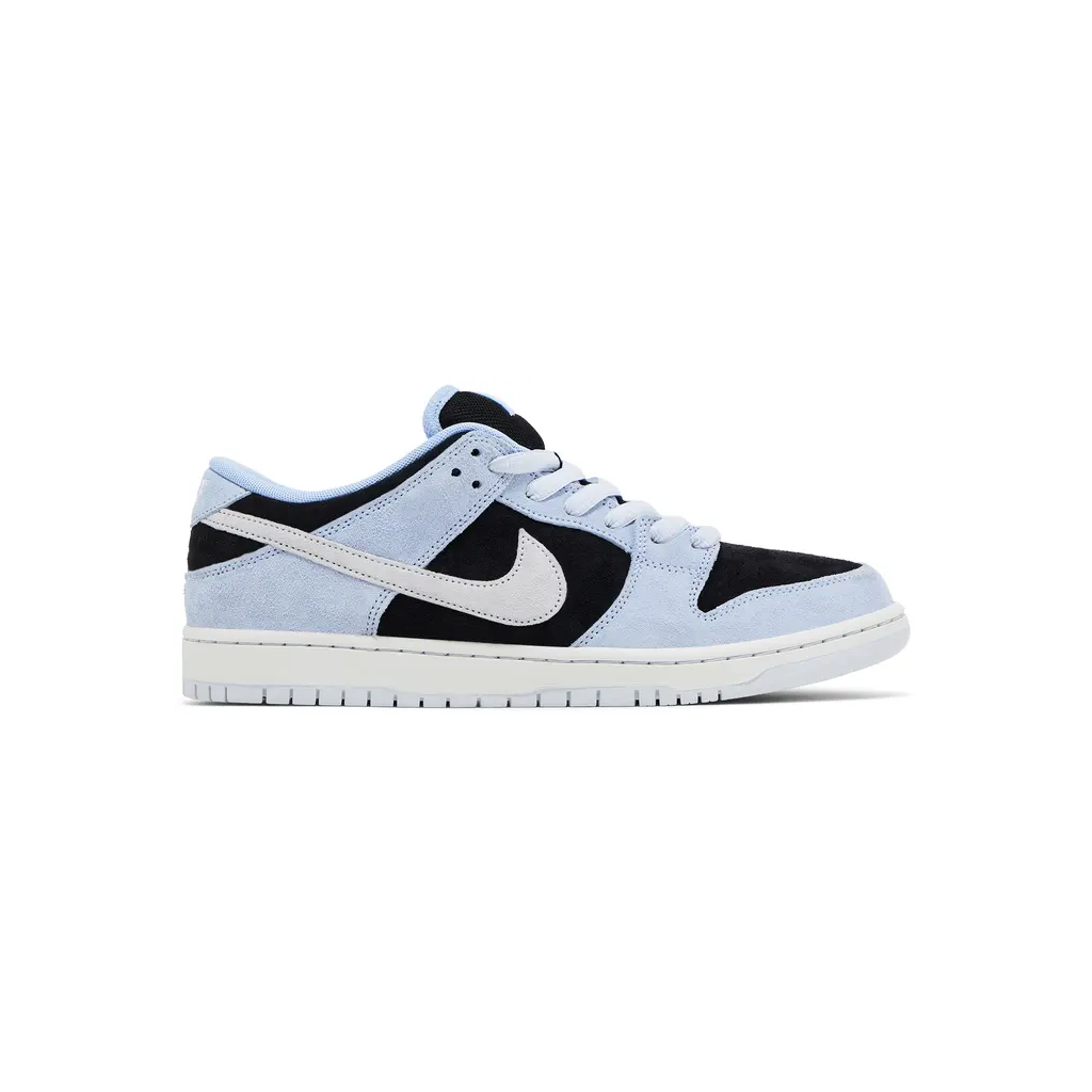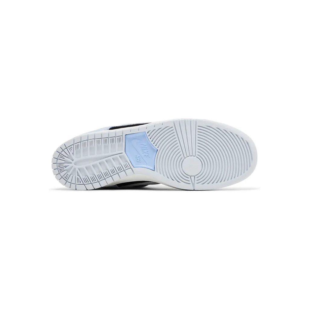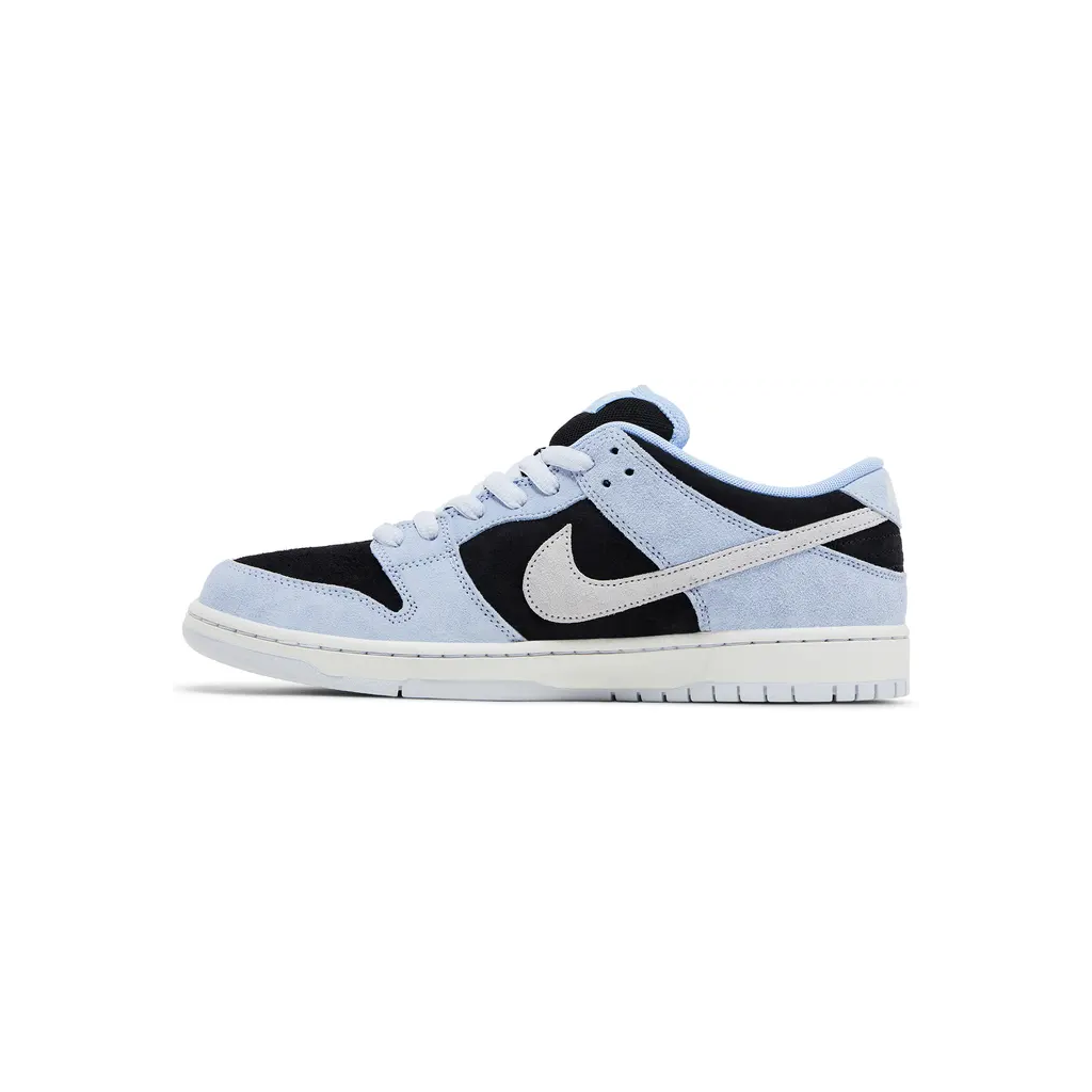 Nike SB Dunk Low Black Aluminum jsou navrženy pro maximální výkon při skateboardingu i pohodlné každodenní nošení, přičemž zaujmou kontrastní kombinací černého základu s modrými detaily v odstínu Aluminum. Svršek je vyroben z kombinace kvalitního semiše a kůže, které zajišťují vysokou odolnost proti opotřebení a dlouhou životnost. Polstrovaný jazyk a límec spolu s tlumicí jednotkou poskytují výborný komfort a stabilitu při pohybu, zatímco flexibilní gumová podrážka s klasickým trakčním vzorem zaručuje spolehlivou přilnavost na různých površích. Díky svému nadčasovému designu a funkční konstrukci je tento model ideální volbou nejen pro skateboardisty, ale i pro každodenní streetwear.