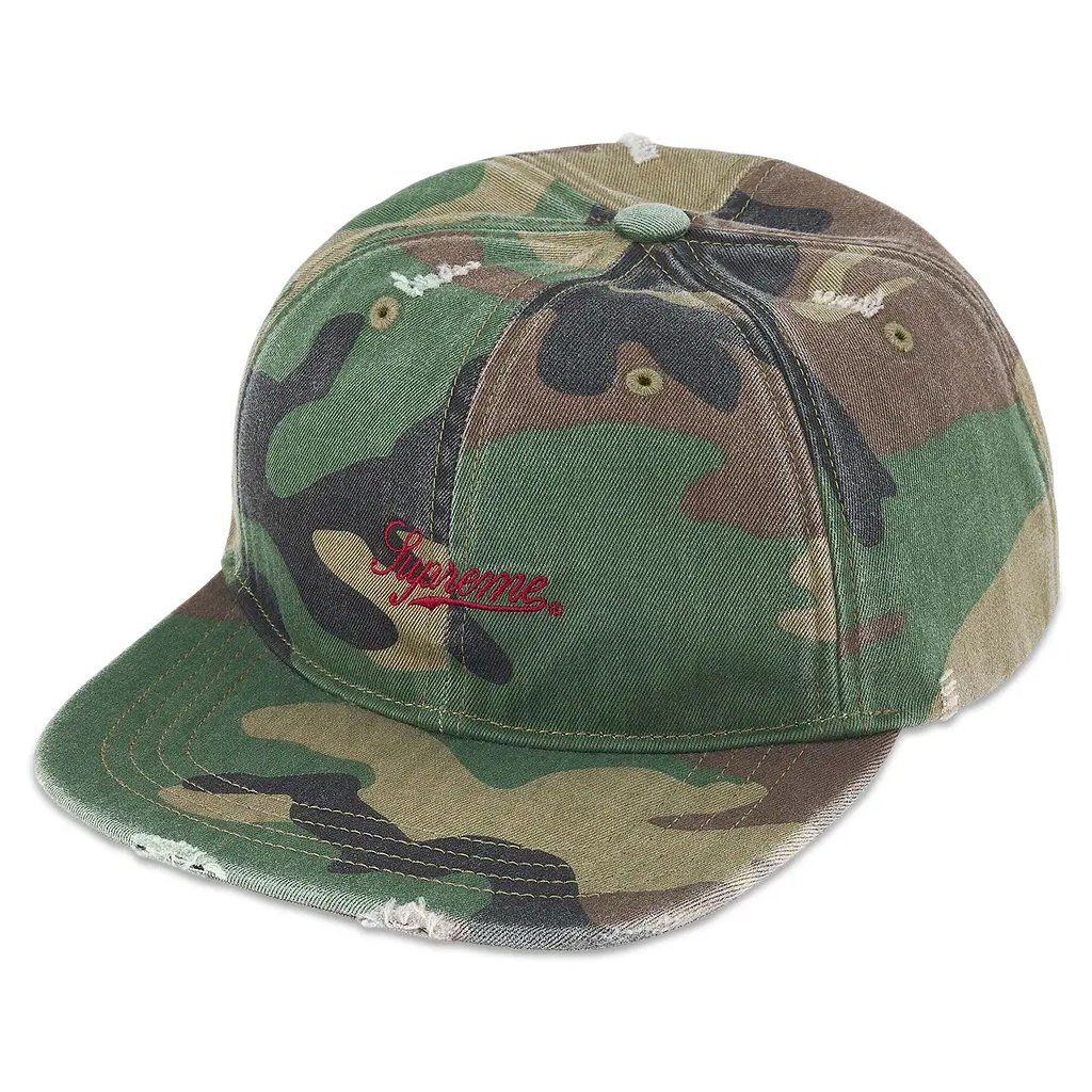 Supreme Distressed Script 6-Panel Woodland Camo