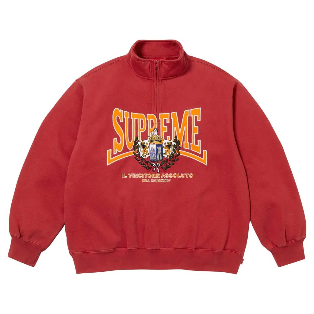 Supreme Crest Applique Half Zip Pullover Red