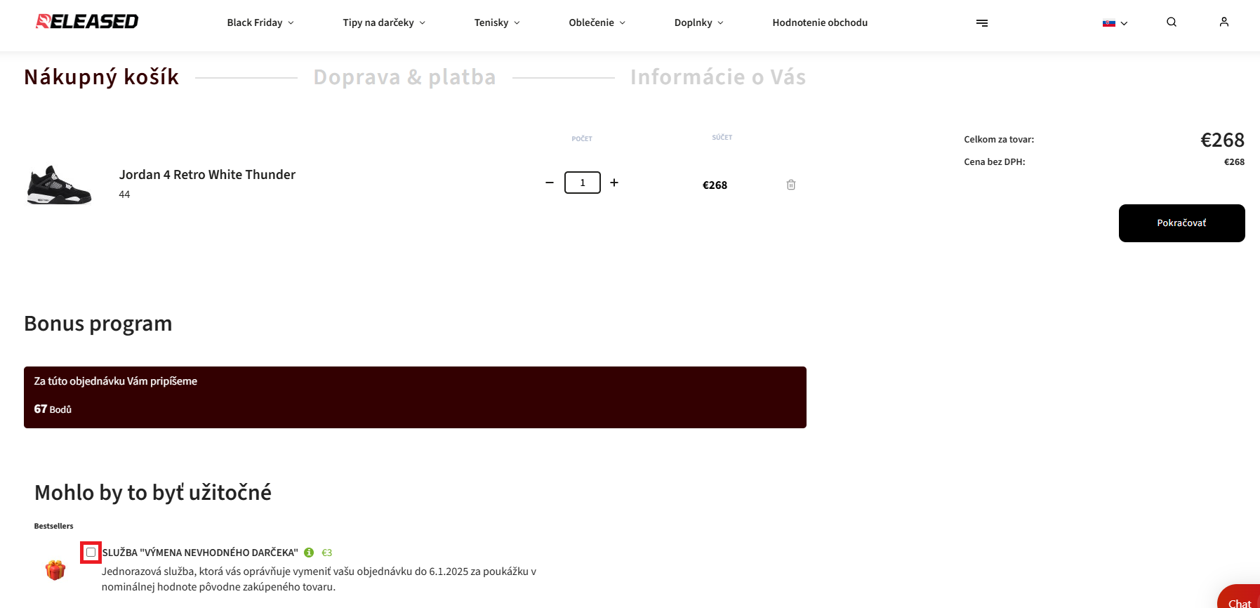 1. Pridajte ho ako ďalší produkt do košíka (pozri obrázok nižšie). Musíte naň kliknúť a potom sa zobrazí vo vašom košíku.